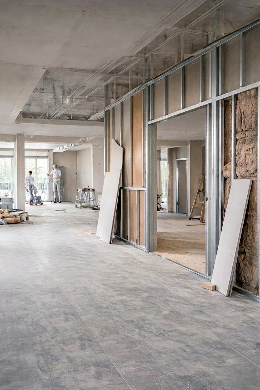• Industrial & Warehousing: Durable, compliant drywall systems for factories and storage facilities